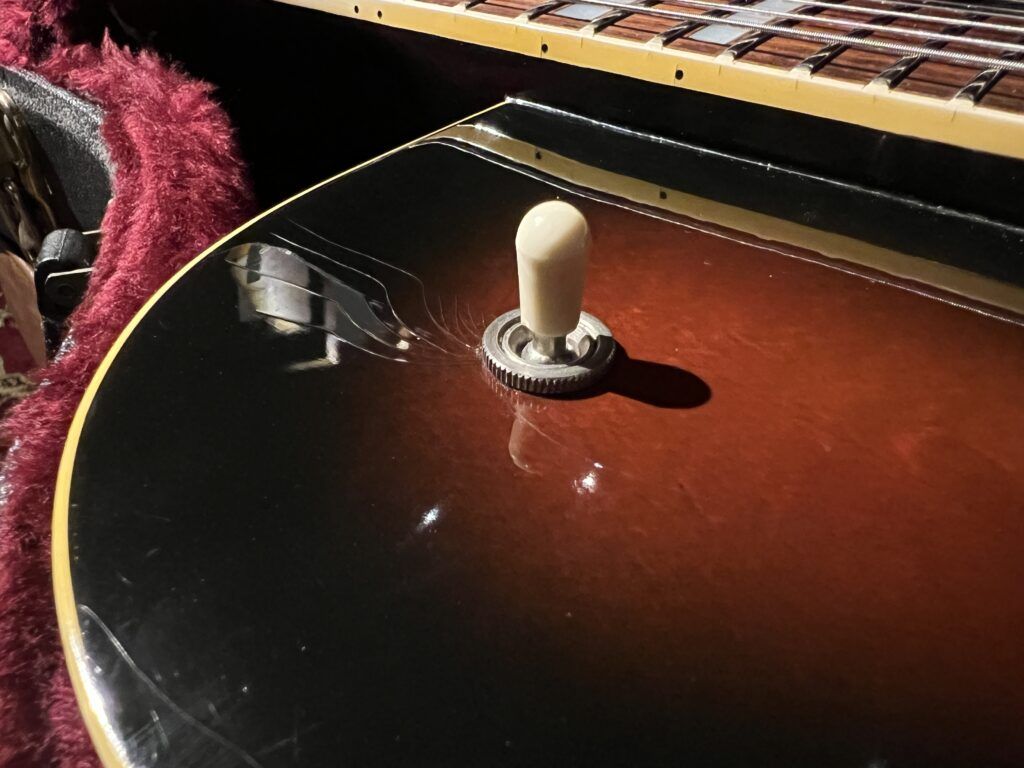 Gretschのビンテージギターは経年に伴いバインディングに劣化が見られることがありますが、当個体は比較的良質な状態を保っています。