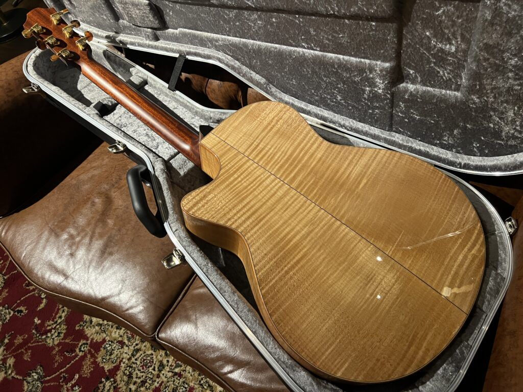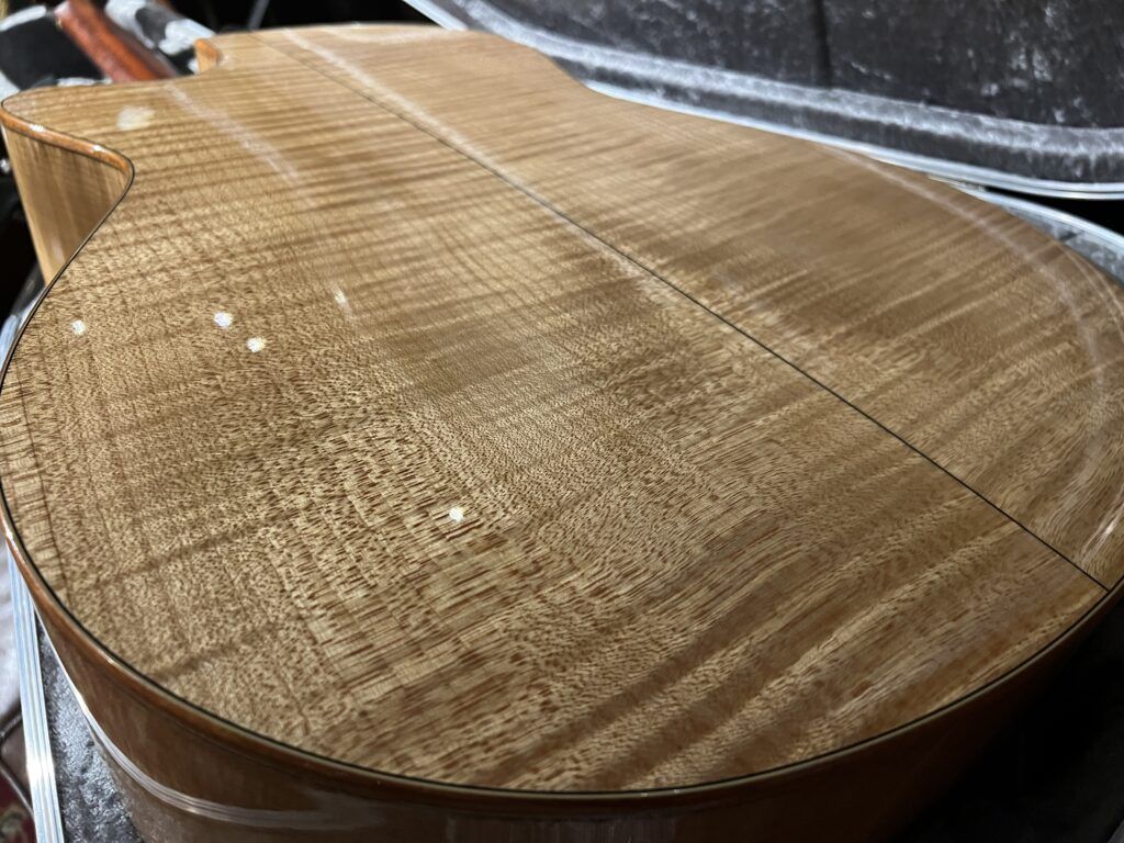 フレイムの杢目がしっかりと見られるバック材を使用。美しい杢目が際立つ1本です。